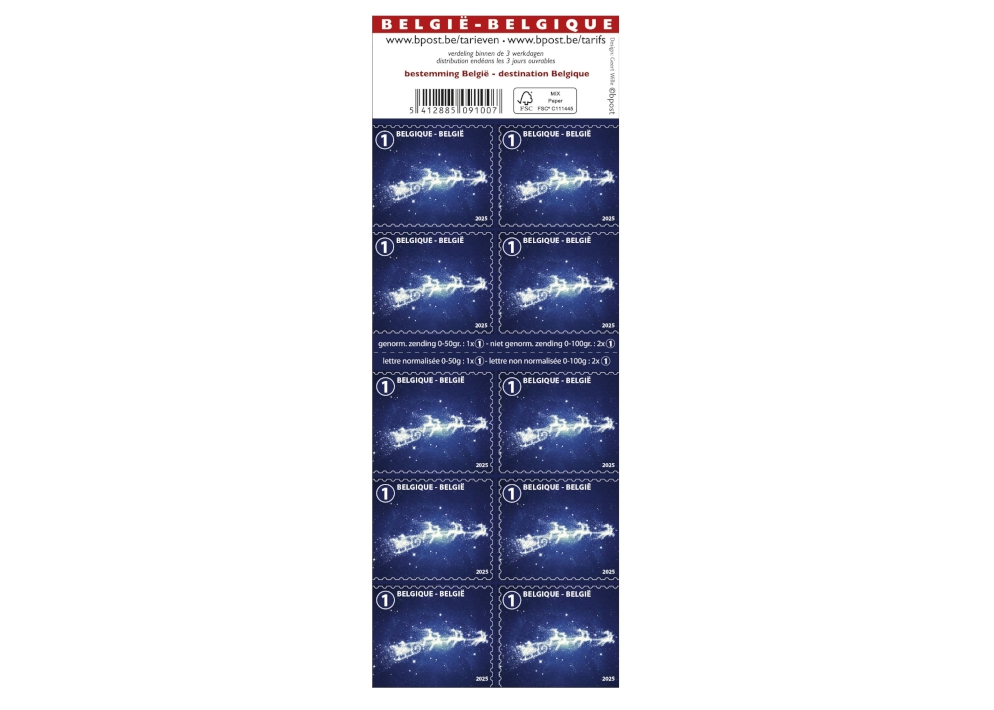 - timbres-poste autocollants pour les envois nationaux en Belgique (tarif 1) et vers les pays de l'Union Européenne (et international)