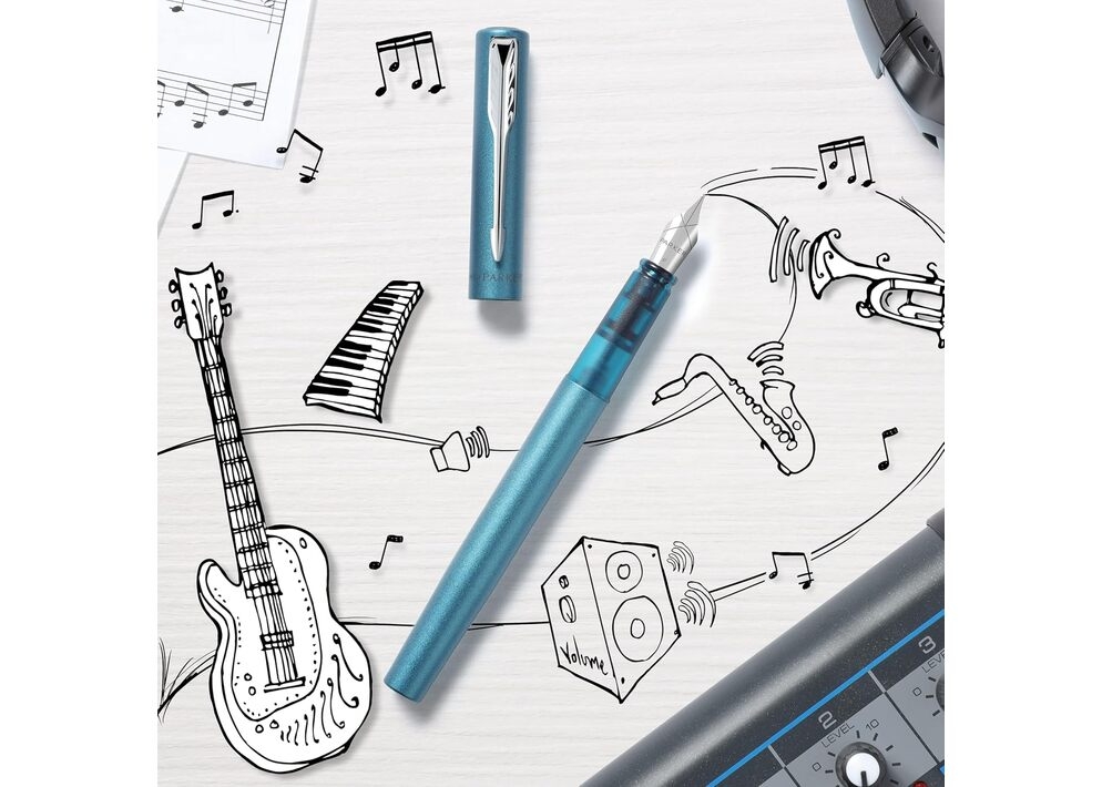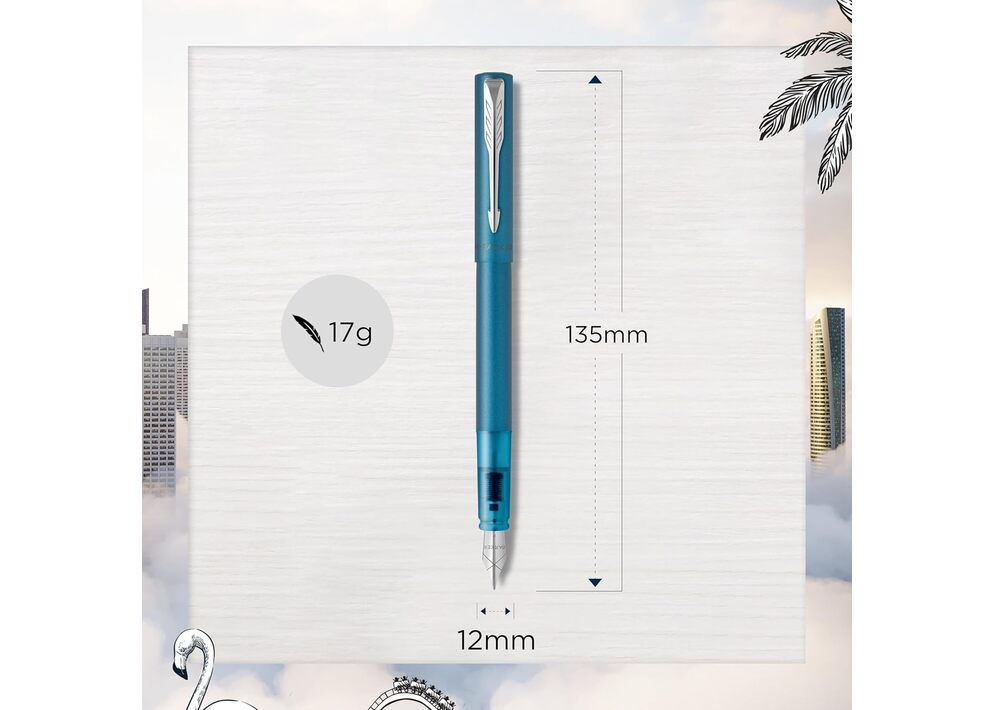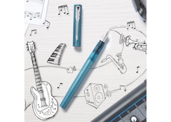 - une finition satinée métallisée avec des détails chromés et le célèbre clip Parker en forme de flèche