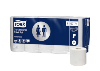 Offrez à vos visiteurs le confort de la maison, même à l’extérieur, avec le papier toilette traditionnel Tork Advanced.