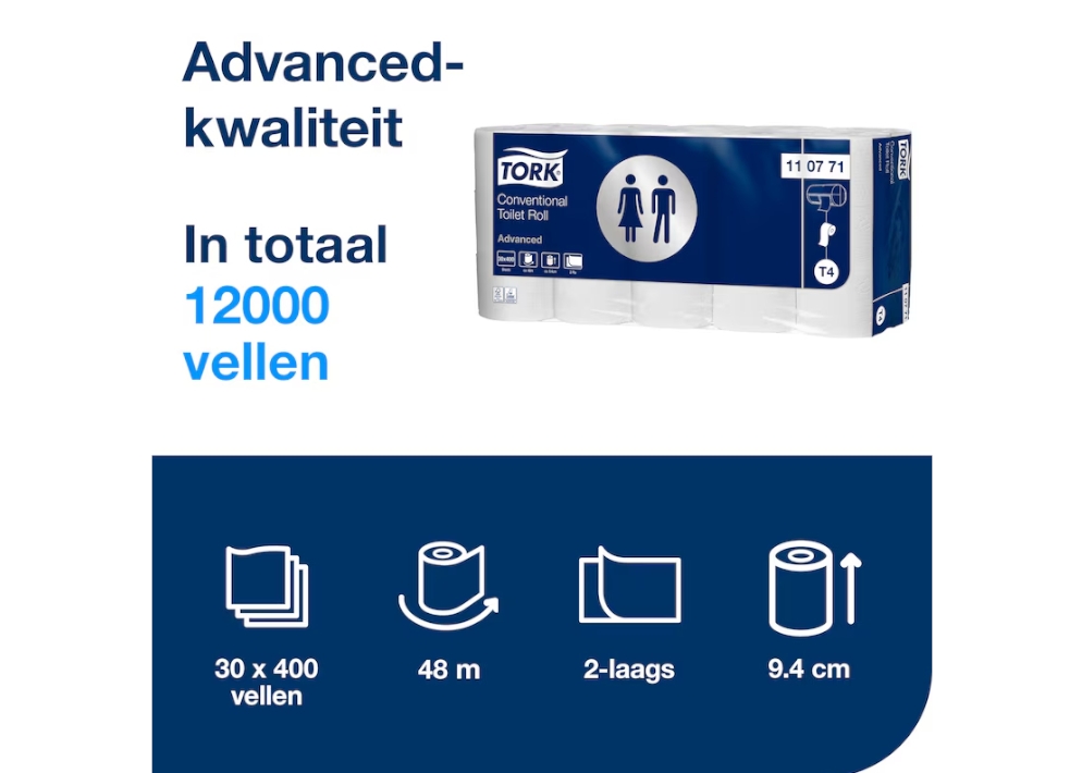 30 rouleaux de papier toilette Tork T4 Advanced 110771 2 plis blanc
