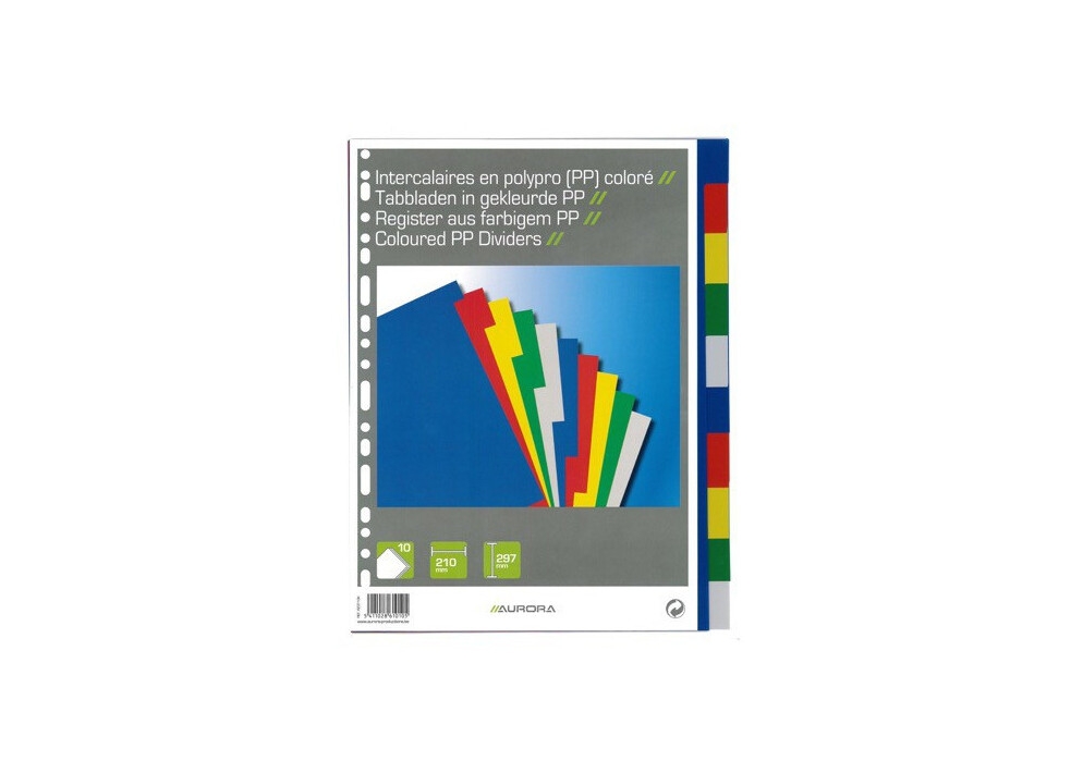 Set van 10 verdeelkaarten A4 in PP = 2 x 5 kleuren