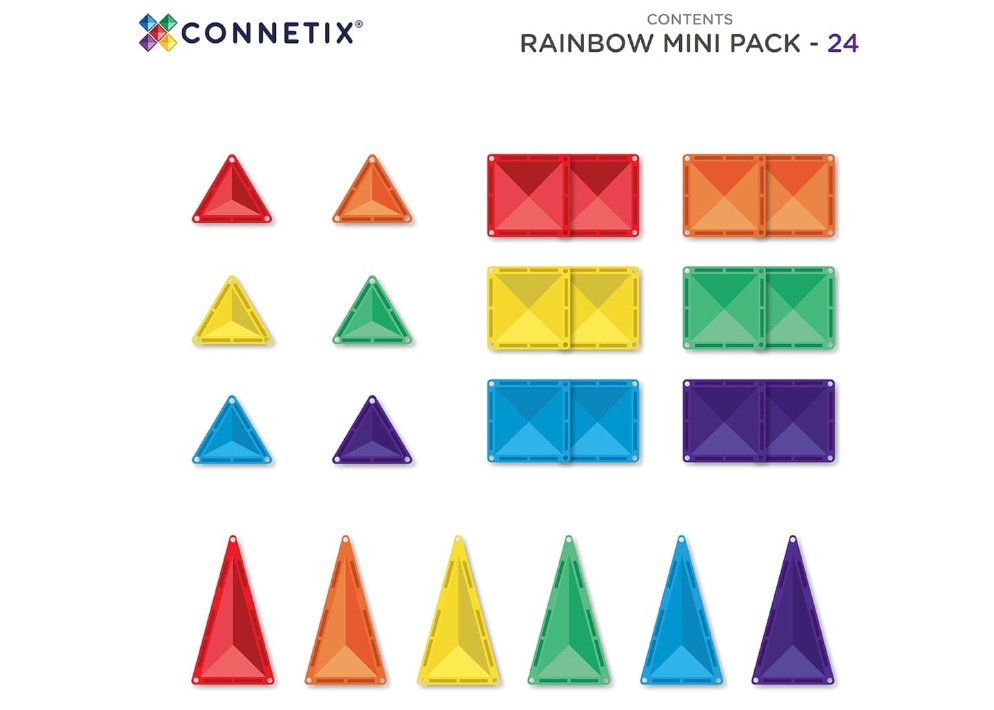 Met een selectie aan vormen in elke regenboogkleur ontdek je vormen en kleuren in zowel 2D als 3D, ontwikkel je creativiteit & bouw je raketten, ijsjes, huizen, bloemen, dinosaurussen, dieren, boten, mandala's en meer. Of je nu op zoek bent naar het perfecte cadeau, nieuwsgierig bent naar de magnetische tegels van CONNETIX of je collectie wilt uitbreiden, deze set biedt hoe dan ook eindeloos veel mogelijkheden!
