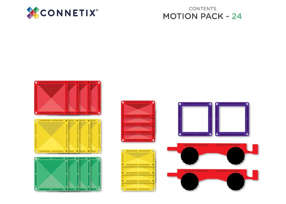 Zet je verbeelding in versnelling met deze set. Met twee auto onderstellen met rubberen wielen en een verscheidenheid aan tegels en is het perfecte cadeau voor autoliefhebbers. Het Motion Pack stimuleert de creativiteit en verbeelding & moedigt kinderen aan om begrippen als beweging, magnetisme en kleur te ontdekken. Deze set biedt eindeloos veel mogelijkheden: zowel als standalone, startpakket of uitbreidingspakket. Van auto's en vrachtwagens, over jachten en boten, tot bussen en brandweerauto's, het kan allemaal!