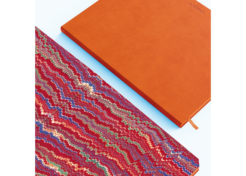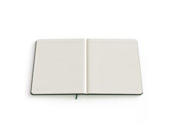 - heeft een speciale binding waardoor hij volledig vlak op tafel blijft liggen, ideaal voor linkshandigen en wie de volledige breedte van het notitieboek wil gebruiken