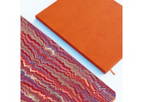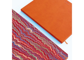 - heeft een speciale binding waardoor hij volledig vlak op tafel blijft liggen, ideaal voor linkshandigen en wie de volledige breedte van het notitieboek wil gebruiken