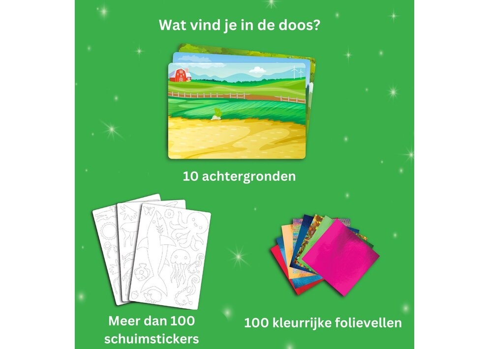 - bevat ook 100 folie blaadjes zodat je zeker genoeg hebt om alle schuimstickers een mooie kleur te geven
