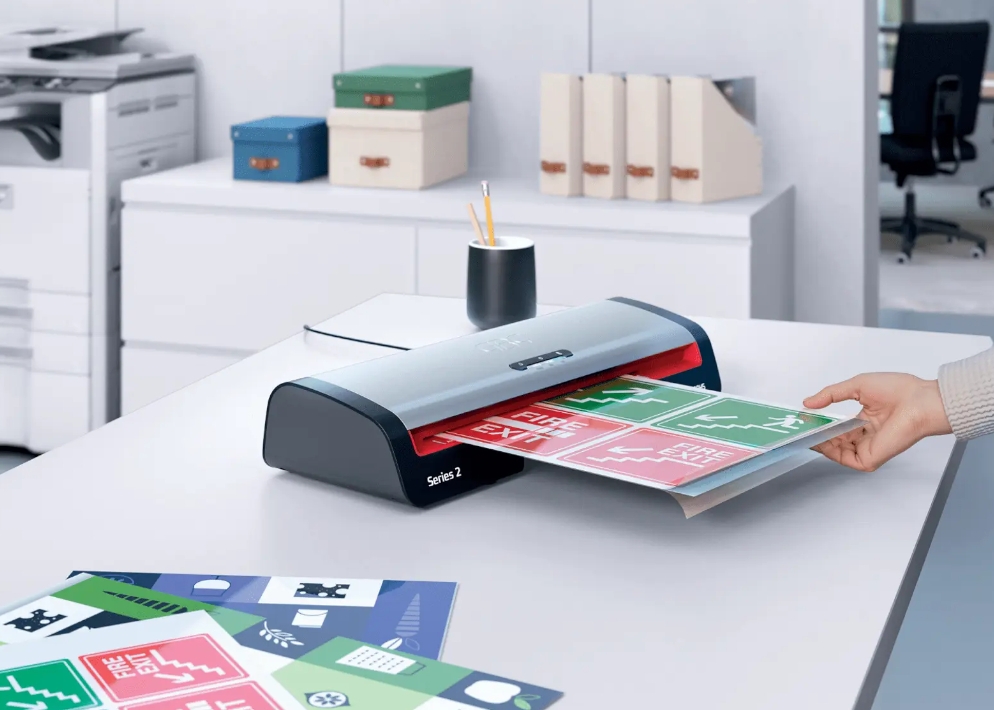 - handige invoerlichtjes zorgen ervoor dat de lamineerhoezen recht door de lamineermachine worden gevoerd om vastlopen te voorkomen