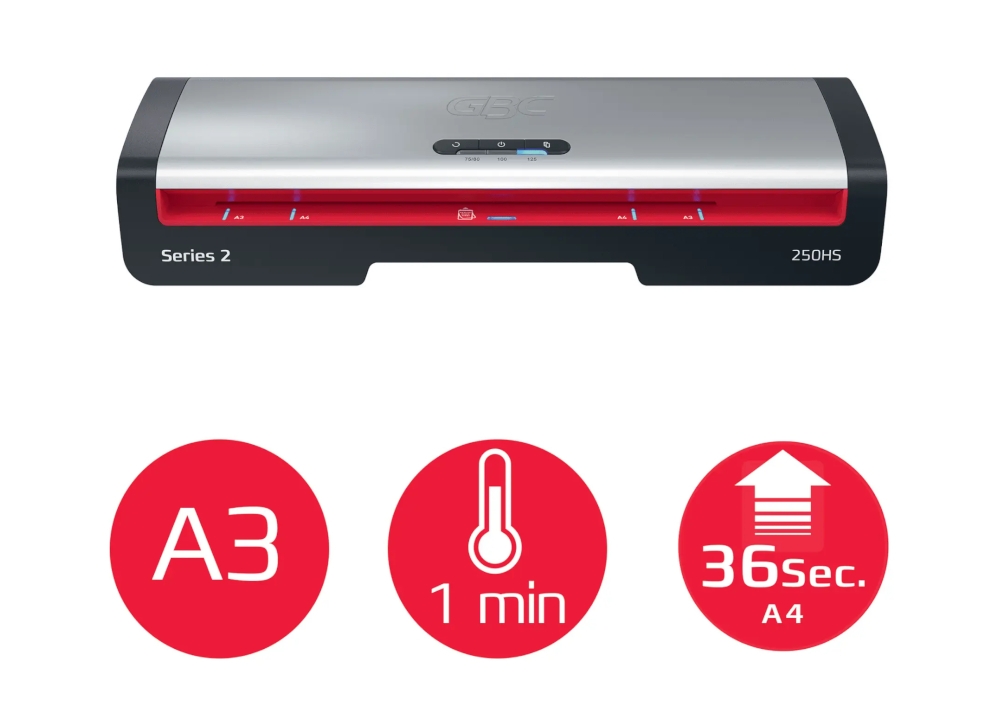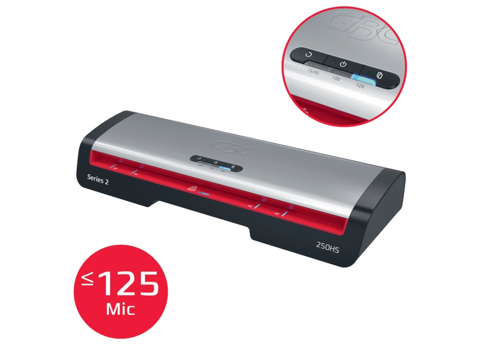 - lamineert een A4 document (75 mic) in slechts 36 seconden