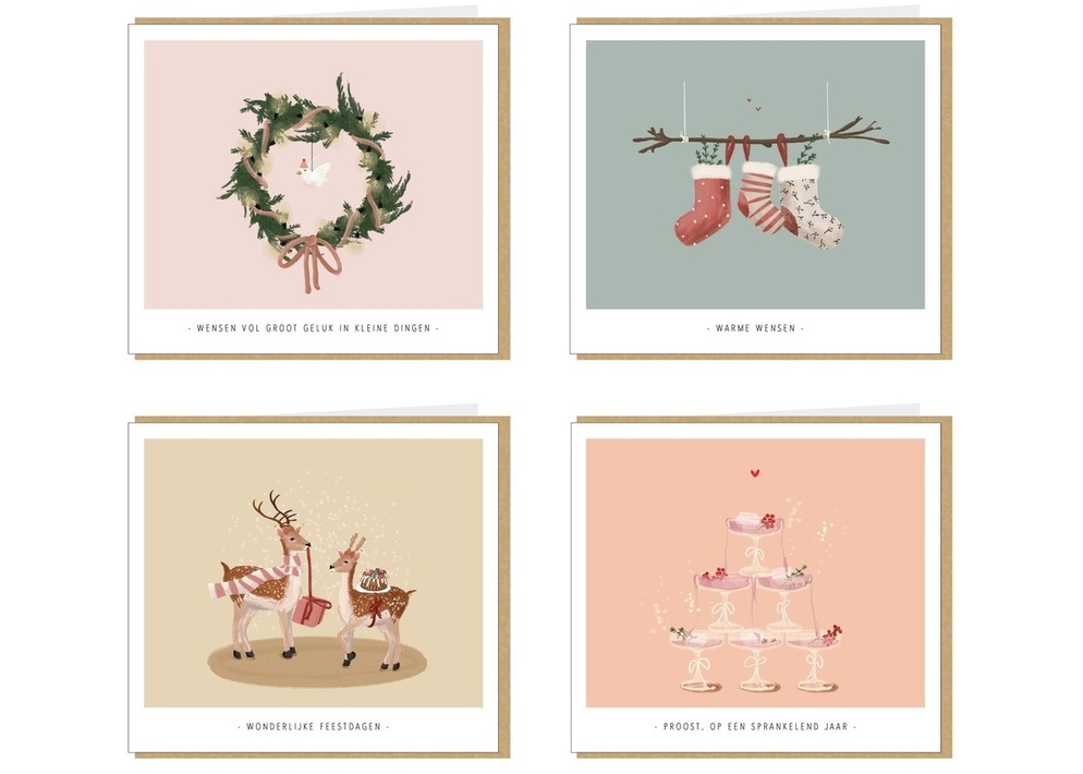 - doos met 8 Kerstwenskaarten met enveloppen