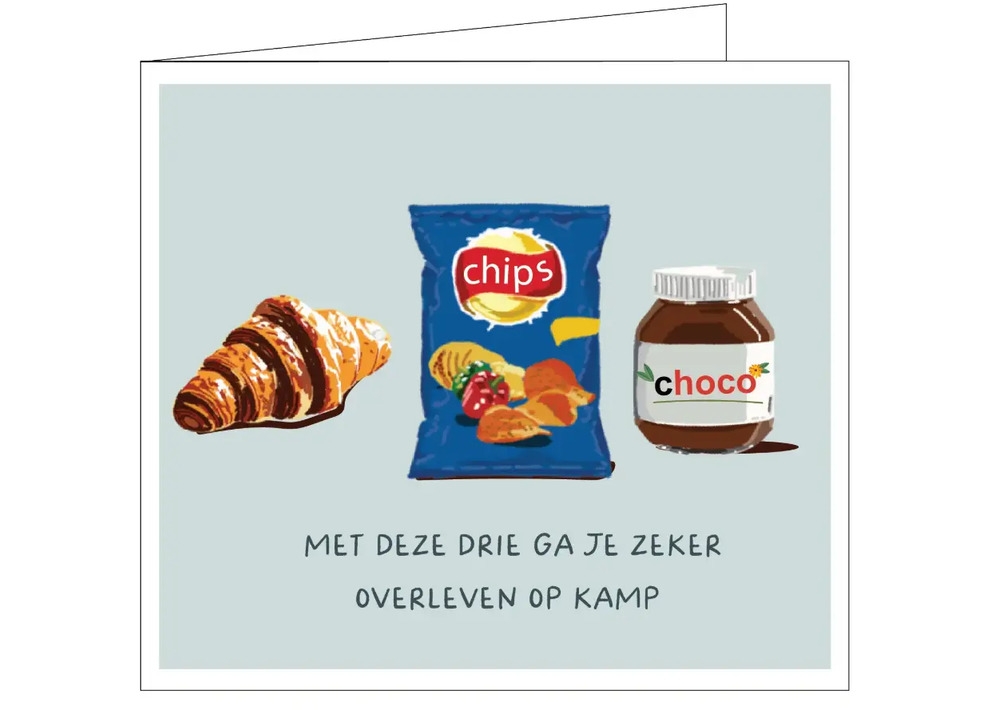 Wenskaart Mailbox Op Kamp 'Met Deze Drie Ga Je Zeker Overleven Op Kamp'
