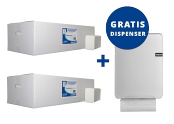 2 dozen gevouwen handdoekjes + gratis handdoekdispenser wit