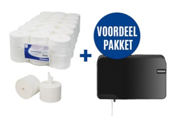 Bespaar slim en werk hygiënisch met dit voordeelpakket van 36 rollen topkwaliteit toiletpapier én een dispenser, klaar voor dagelijks gebruik!