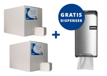Kies voor een complete en hygiënische oplossing met 2 dozen gevouwen toiletpapier en een gratis Pandava dispenser – zuinig, netjes en perfect voor dagelijks gebruik!