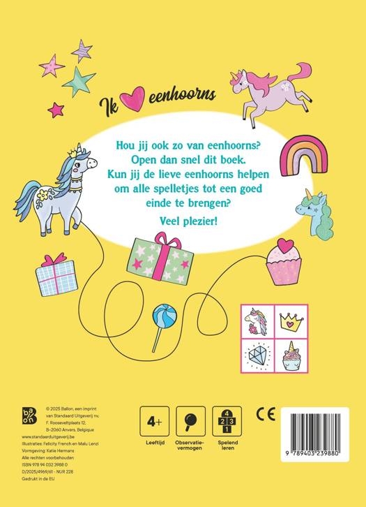 - in dit boek vind je tal van leuke spelletjes, zoals doolhoven, kleuren op code, zoekplaten, sudoku’s, puzzels en nog veel meer