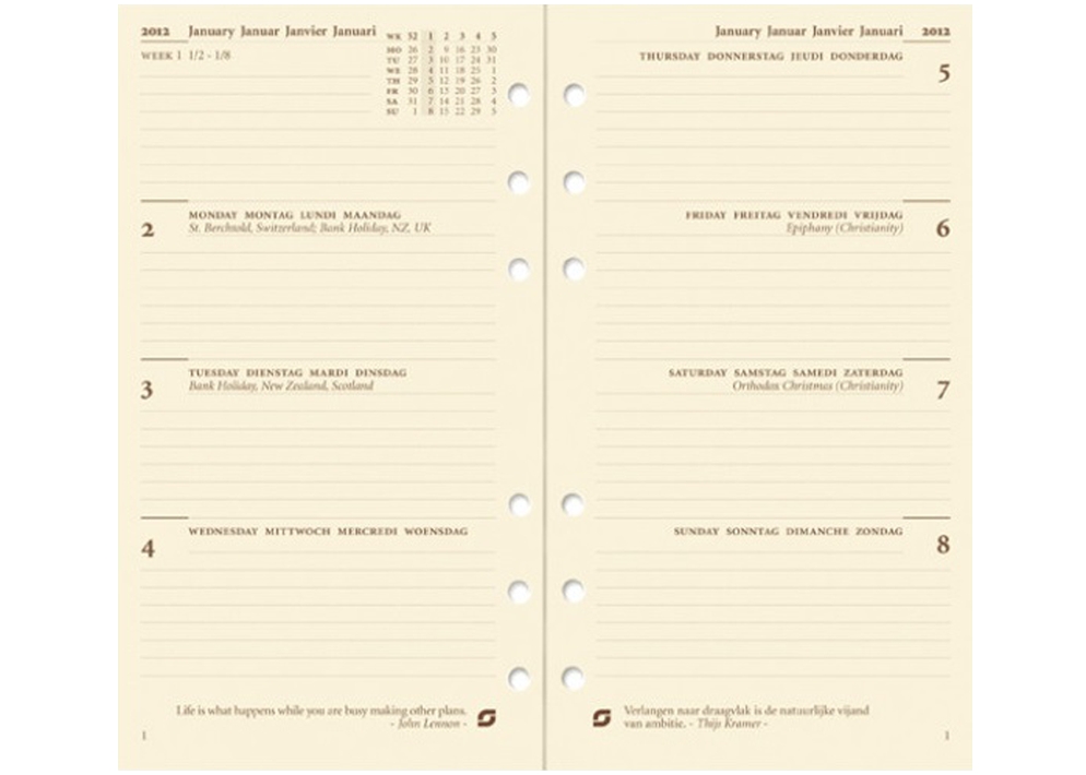 - agendavulling bevat ook een personaliakaart en een kalenderkaart