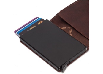 - wanneer je de kleine hendel onderaan de kaarthouder naar je toe trekt, komen de pasjes in waaiervorm uit de pasjeshouder, zo heb je direct een duidelijk overzicht van je pasjes en hoef je niet te zoeken naar het juiste pasje