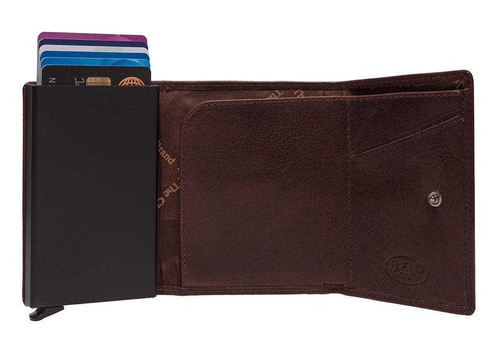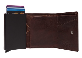 - wanneer je de kleine hendel onderaan de kaarthouder naar je toe trekt, komen de pasjes in waaiervorm uit de pasjeshouder. Zo heb je direct een duidelijk overzicht van je pasjes en hoef je niet te zoeken naar het juiste pasje