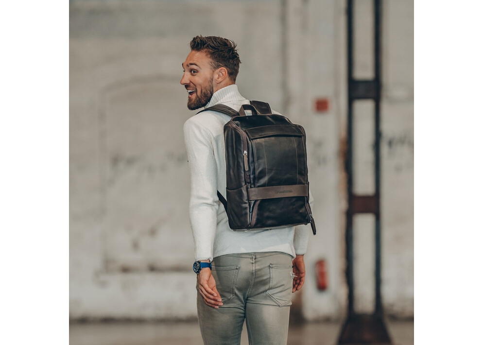 - daarnaast heeft deze leren rugzak een handig laptopvak waar laptops tot 15,4 inch in passen