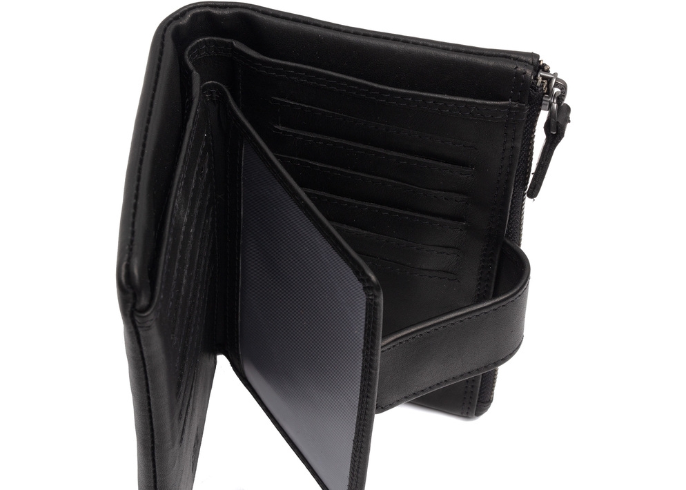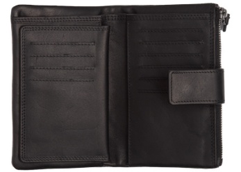- dit hoofdvak is geschikt om bijvoorbeeld je muntgeld in te bewaren; Het andere hoofdvak sluit met een drukknoop en bestaat uit meerdere opbergvakjes voor bijvoorbeeld je pasjes, foto’s, bonnetjes en briefgeld