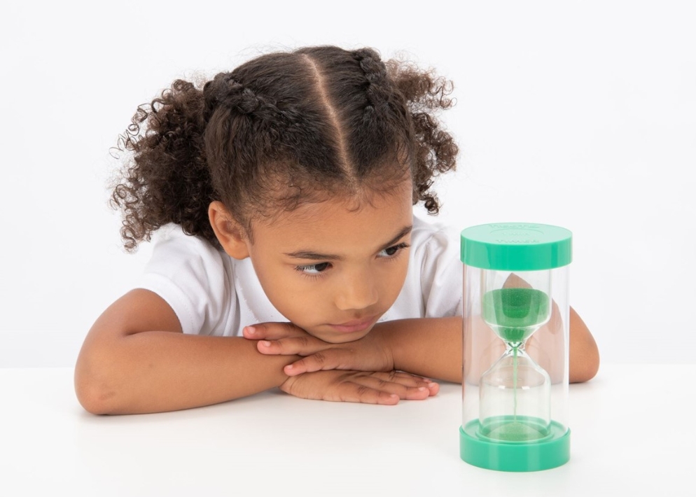 - modern zandloperontwerp in een veilige, onbreekbare plastic container