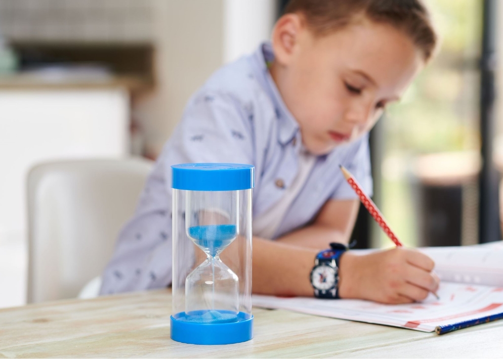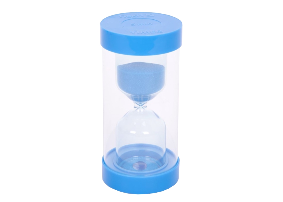 - modern zandloperontwerp in een veilige, onbreekbare plastic container