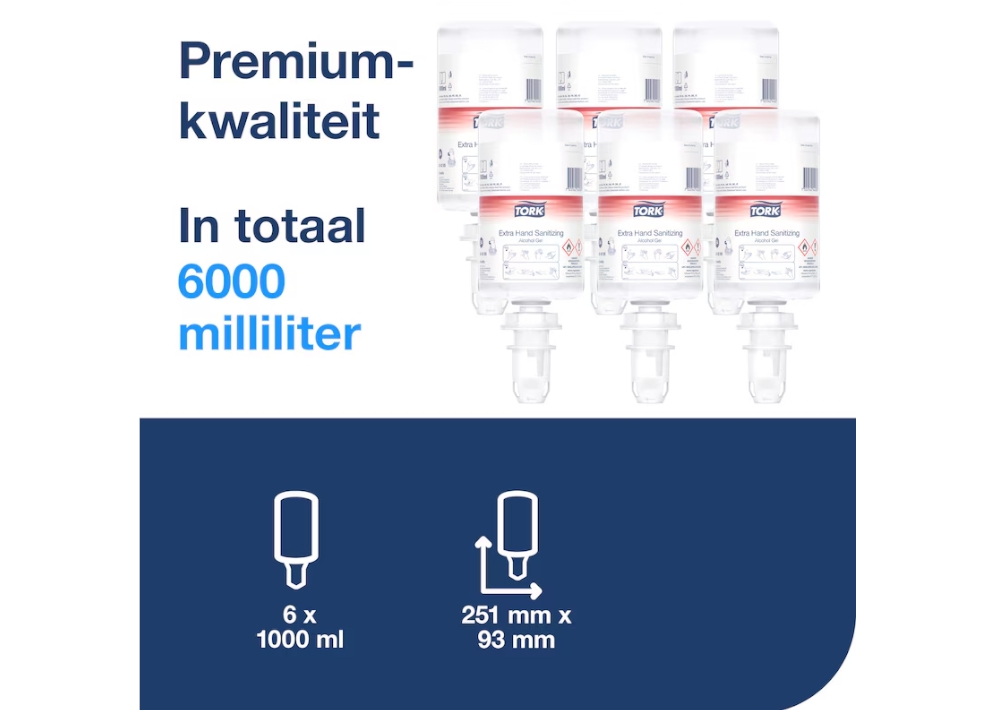 6 flessen Extra Hand Sanitizing Alcohol Gel Tork S4 1000ml