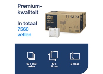 Gevouwen toiletpapier Tork Premium T3 114273 2-laags wit