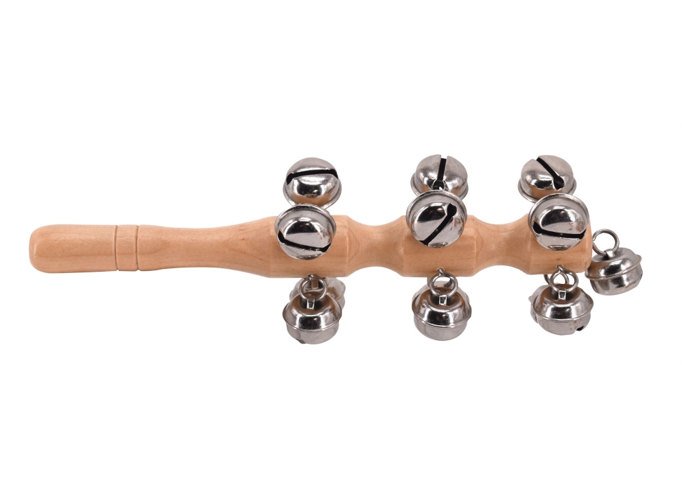 - houten staaf met aangenaam gevoel en helder geluid van 13 belletjes
