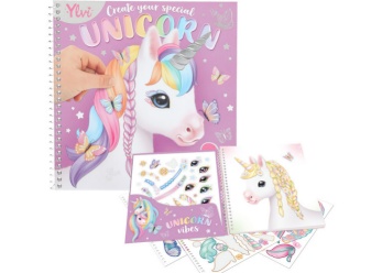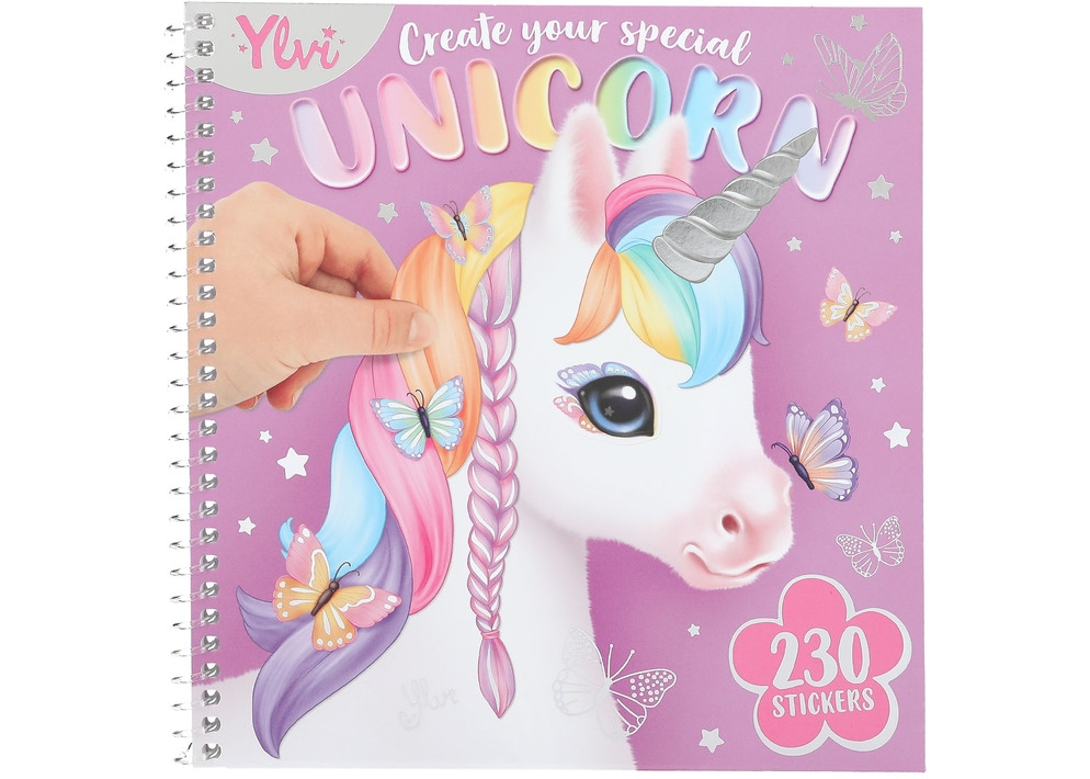 - unicorns heel dichtbij in het stickerboek Create your special Unicorn van Ylvi kun je prachtige hoofden van eenhoorns beplakken met mooie stickers